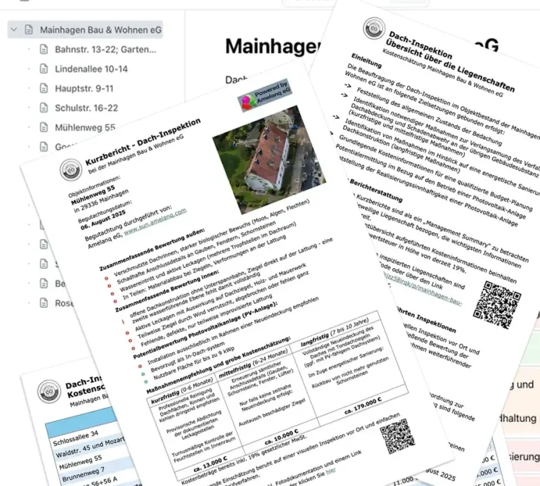 Damit Sie sich einen Eindruck über die Ergebnisse einer Dach-Inspektion verschaffen können haben wir die Mainhagen Bau und Wohnen eG erfunden.