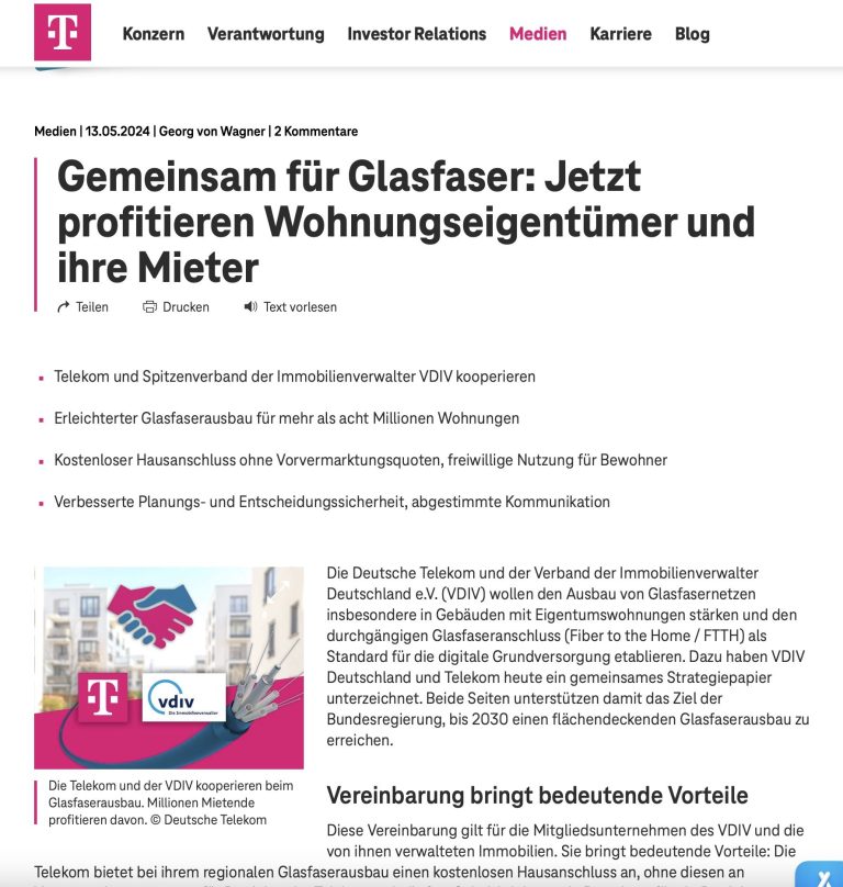 Projektbegleitung Glasfaser-Infrastruktur für Hausverwaltungen